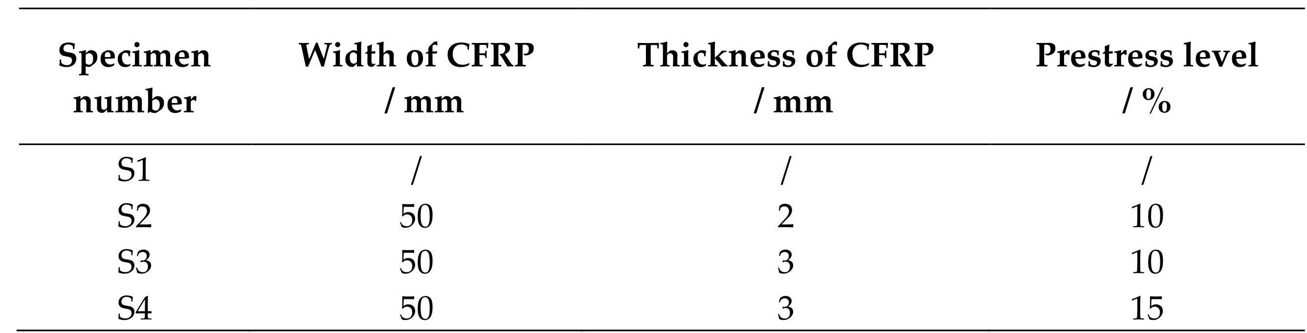 In Table1, the prestress level refers to the percentage value of internal stress (𝜎 ) and tensile strength in the CFRP plates (2520 MPa) .