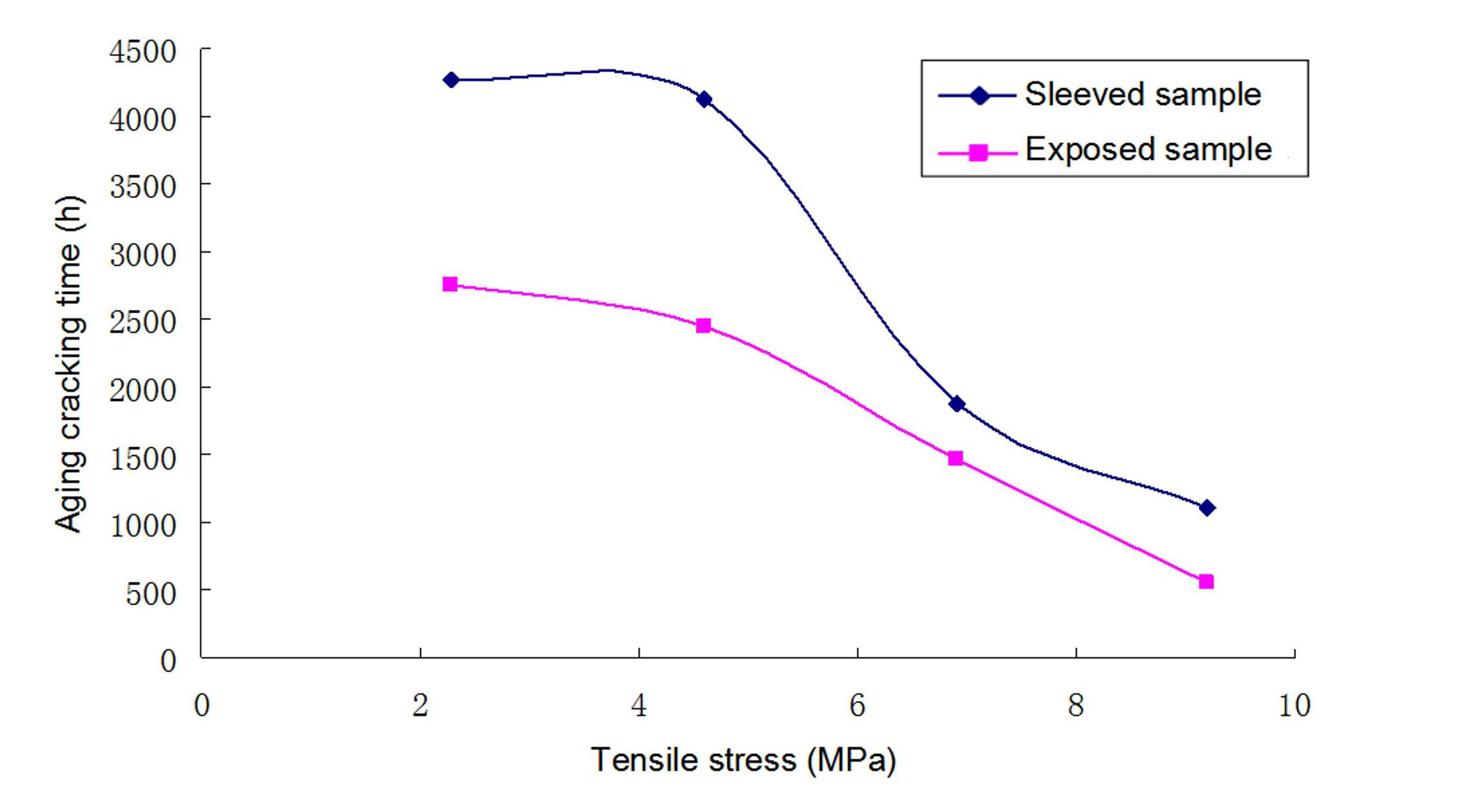 Figure7. Aging cracking time — tensile stress curve in the UV acceleration test