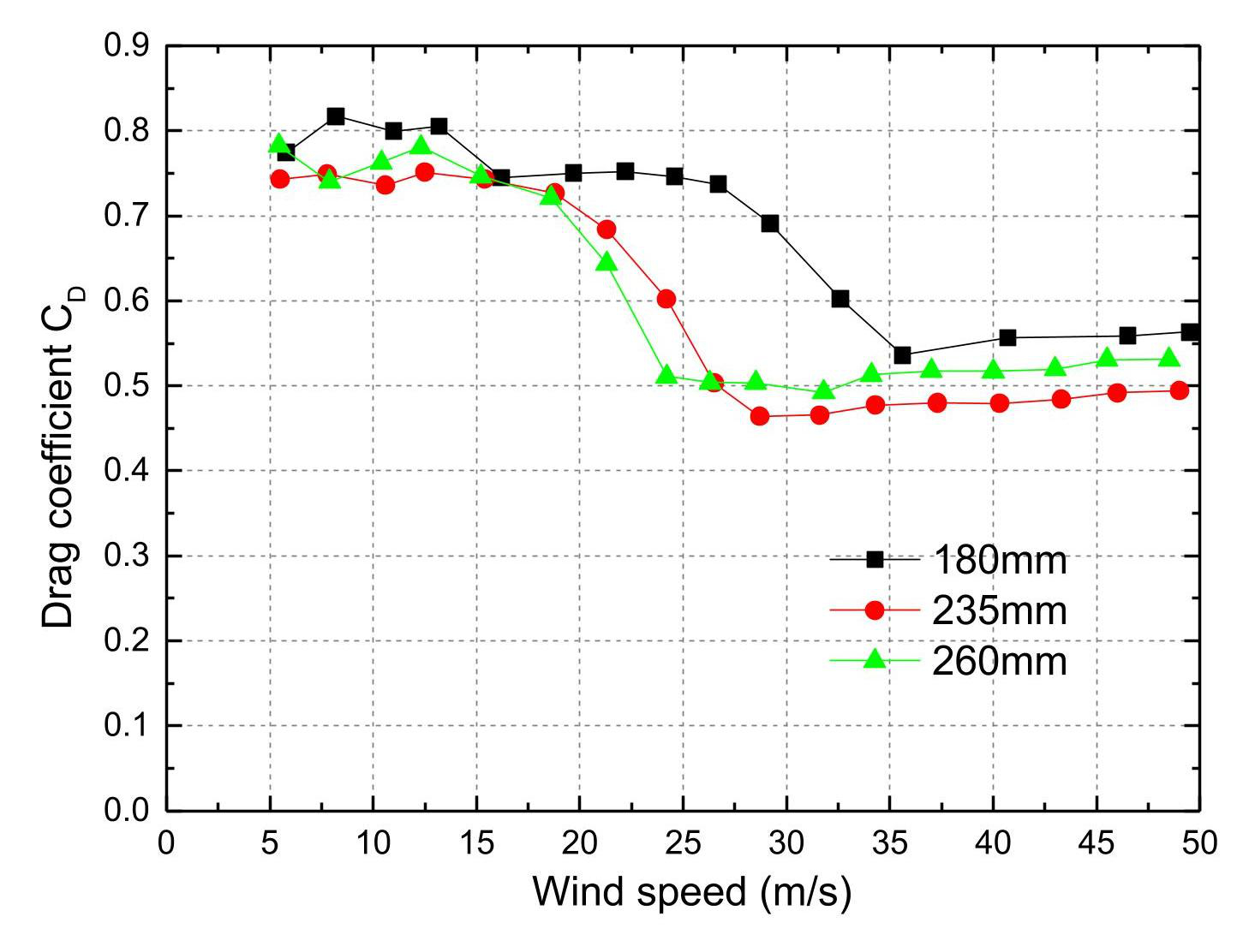 Figure 9. Variation of drag coefficient of cables of different diameters