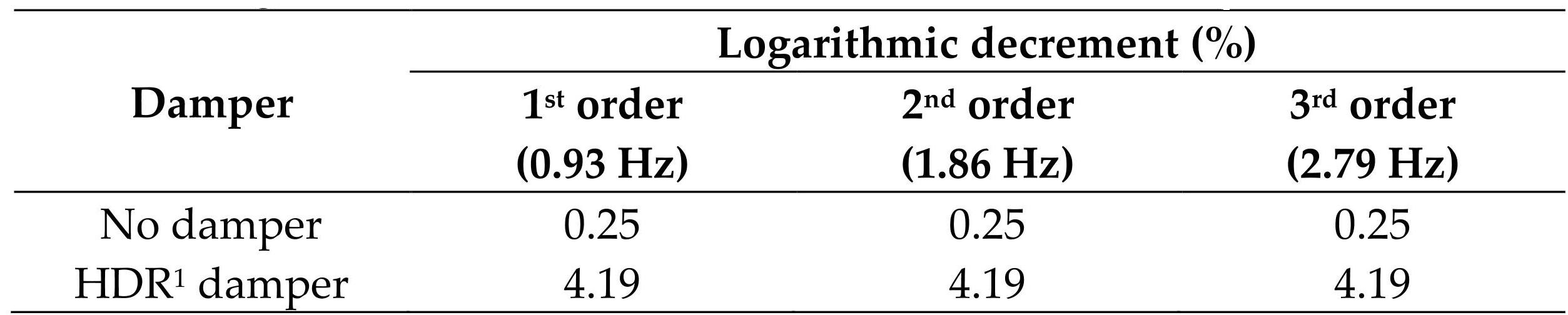 The HDR damper with a minimum of three (3) damping units can effectively restrain the in-plane and out-of-plane vibration and axial rotation. According to the test results, the HDR damper can meet the logarithmic decrement requirement of 3%~4% for cables with lengths greater than 80 m and less than 200 m.