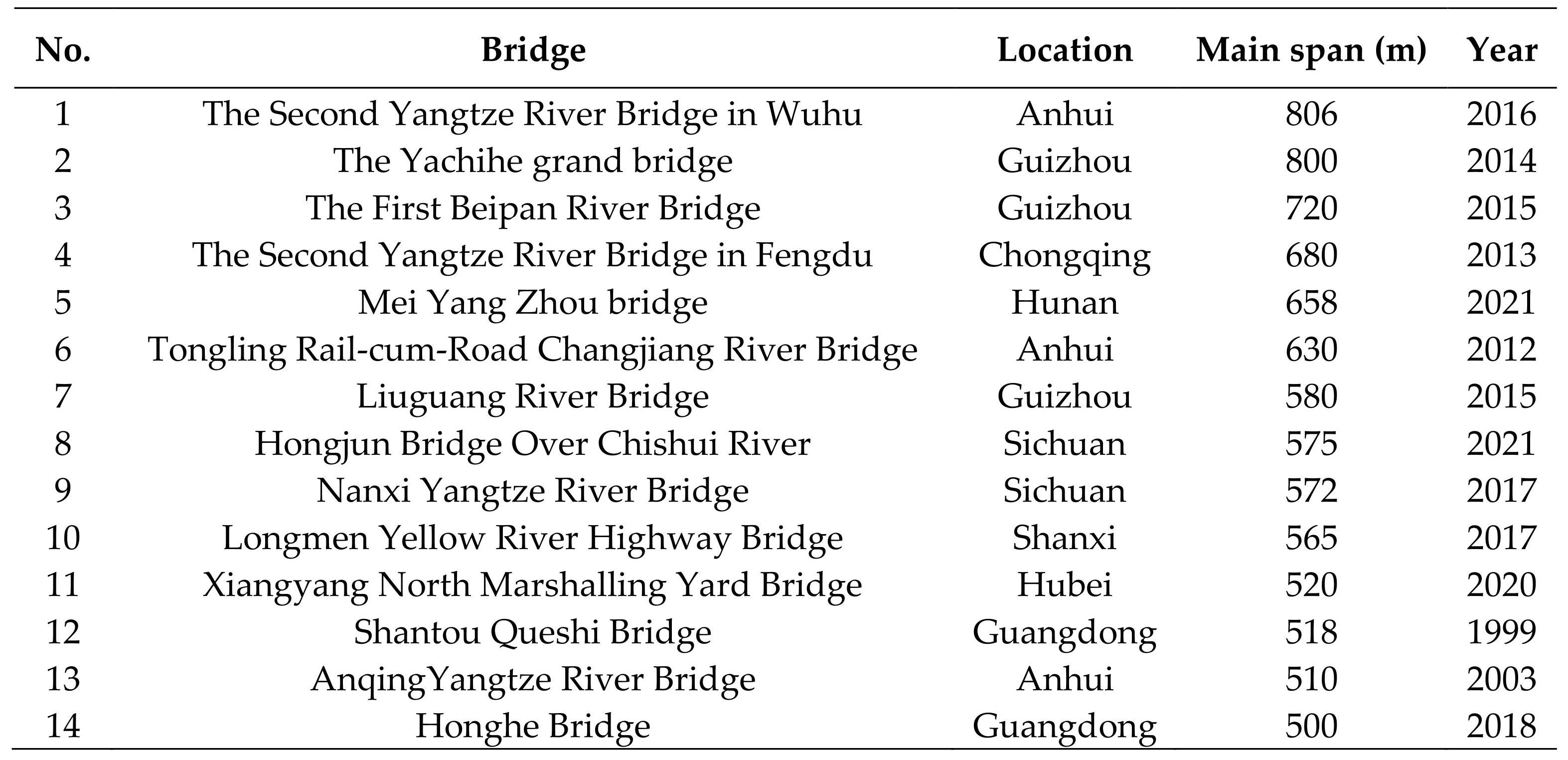 Currently, the OVM250 PSC system has been successfully applied in over 500 bridge projects both domestically and internationally, including14 bridges with a main span greater than 500 meters, as shown in Table1.