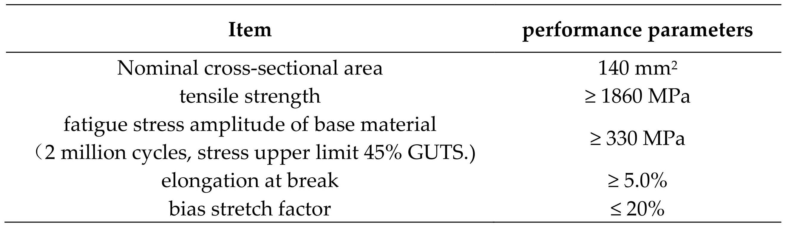 To improve the fatigue resistance of individual steel strands, we improved the composition of steel wire rods and optimized manufacturing processes, with a focus on key process steps such as ingredient ratio, wire drawing, stabilization treatment, and dimensional accuracy control during steel strand production. We have developed steel strands with excellent fatigue resistance performance, with important performance parameters shown in Table2.