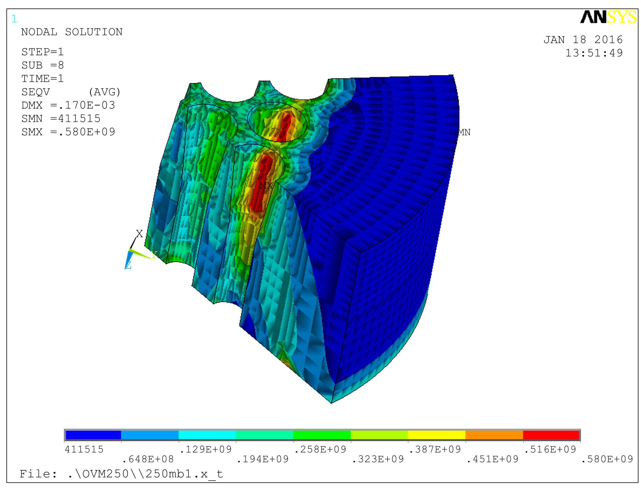 Figure3. Finite element analysis of the anchor head of the OVM250 PSC