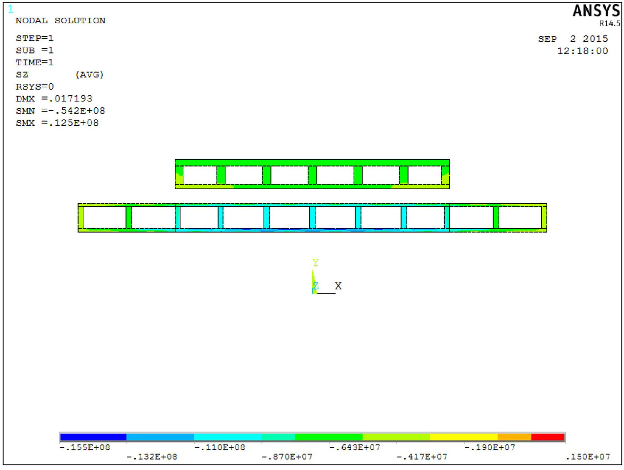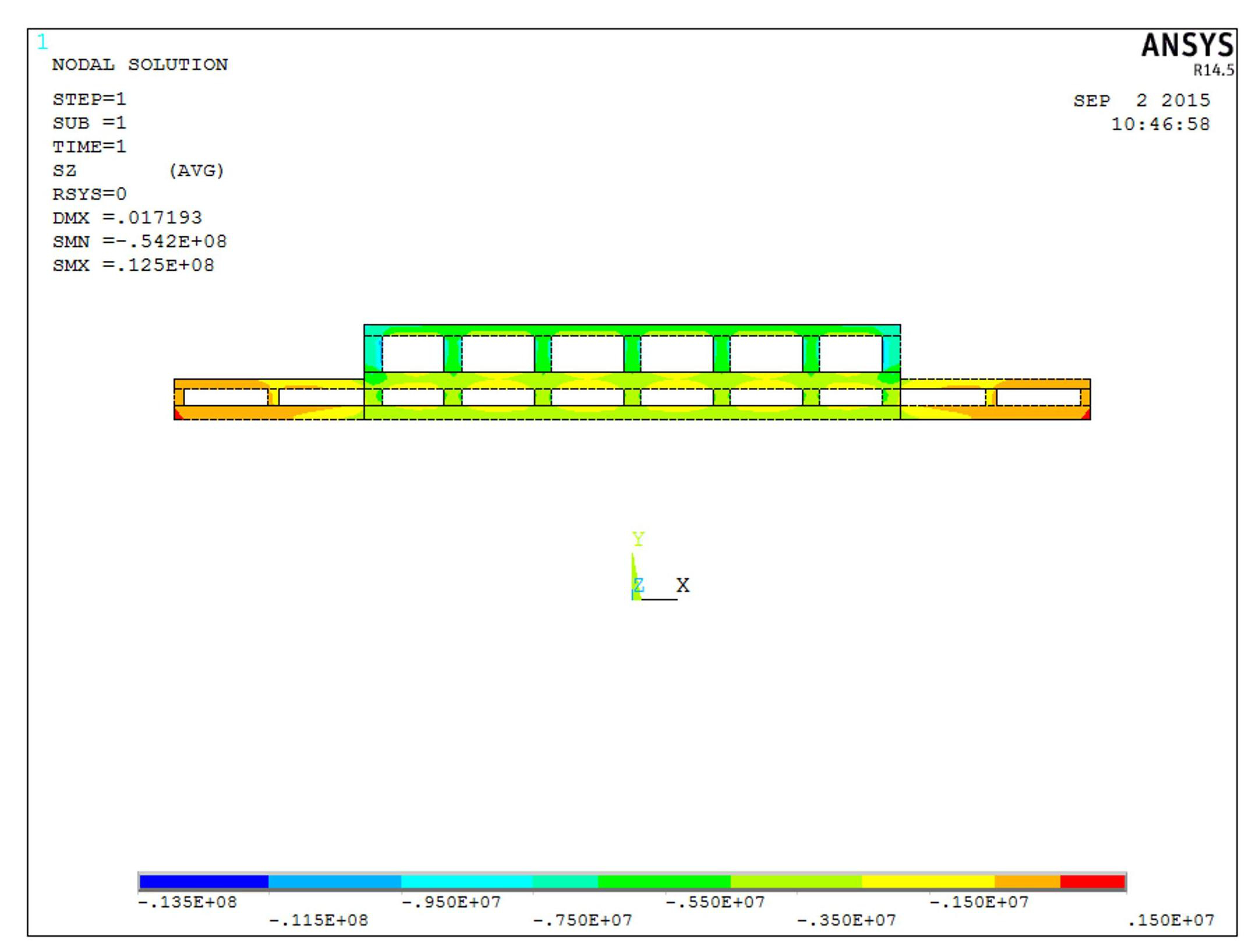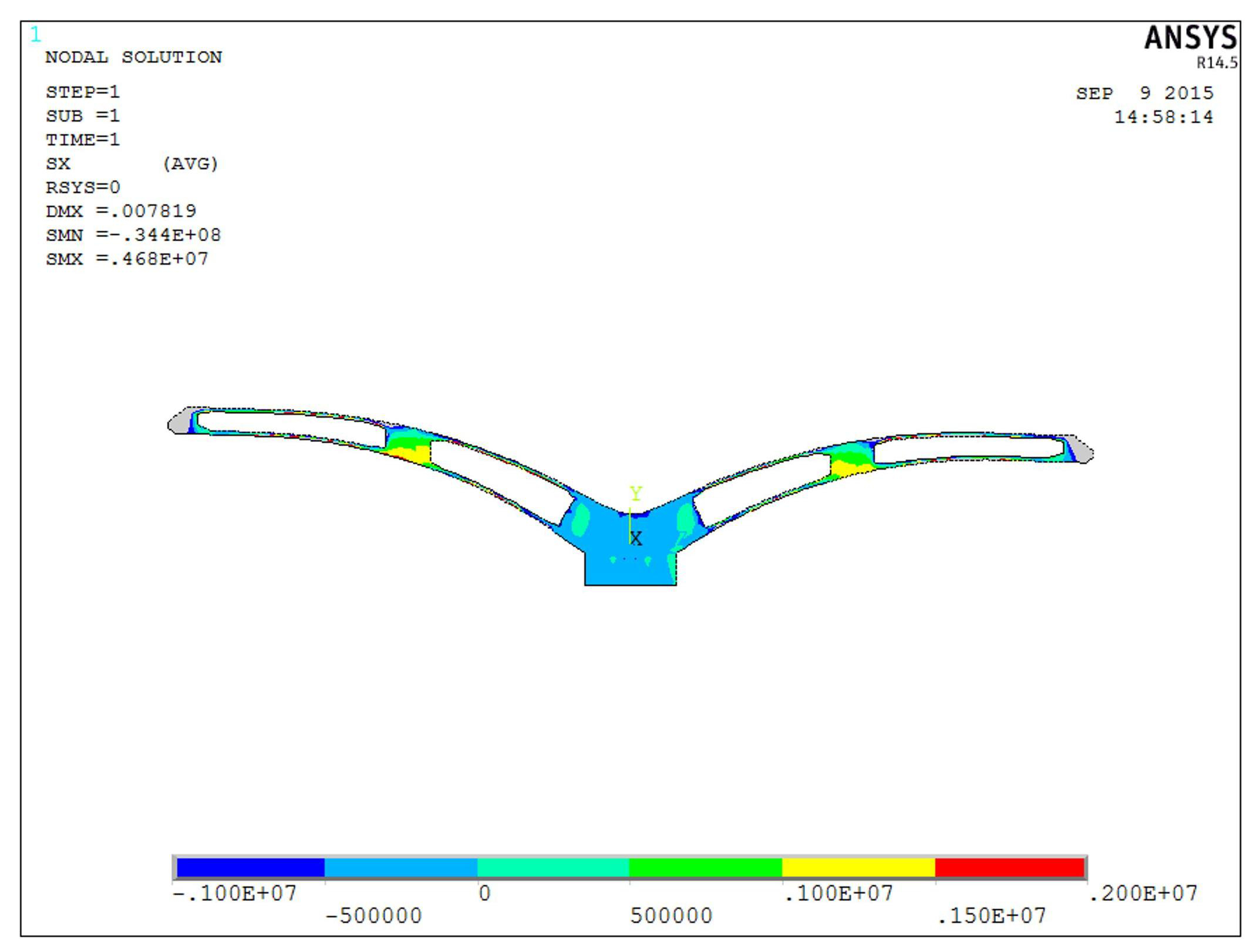 Figure11. Longitudinal Bridge Stress of section No.9 (Unit: Pa)
