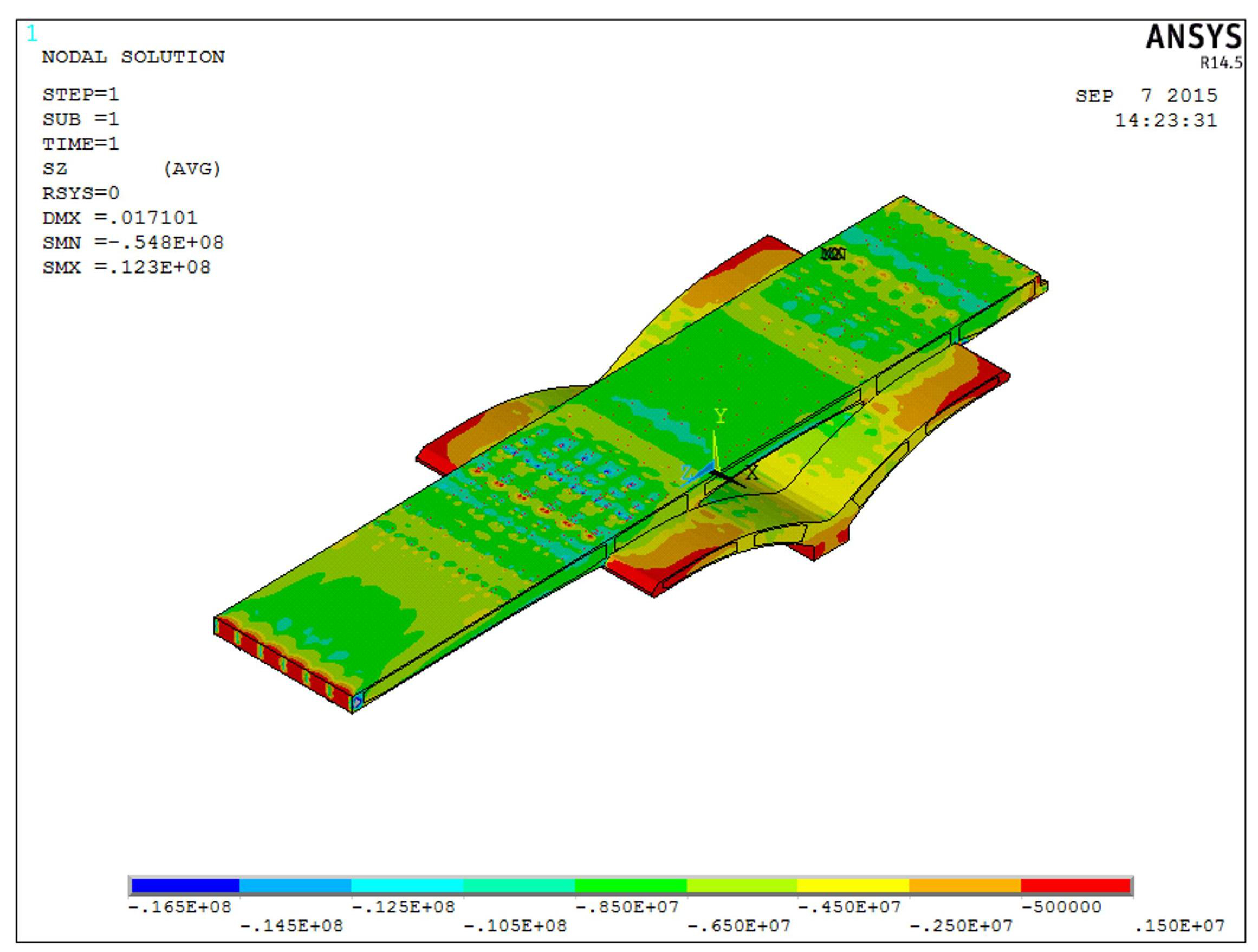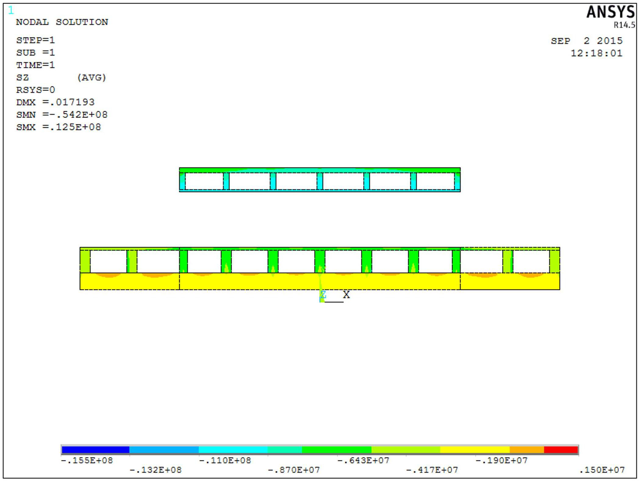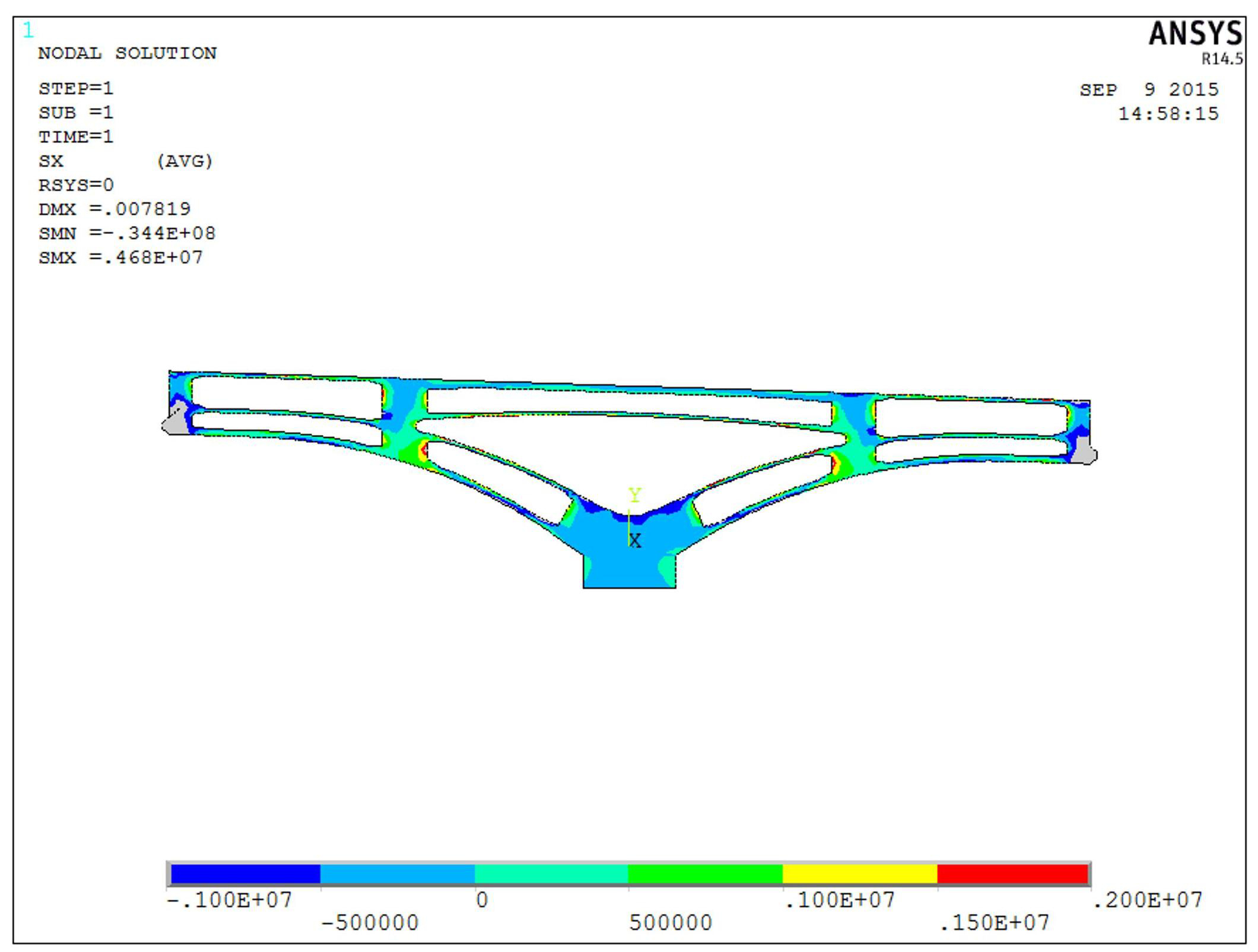 Figure11. Longitudinal Bridge Stress of section No.9 (Unit: Pa)