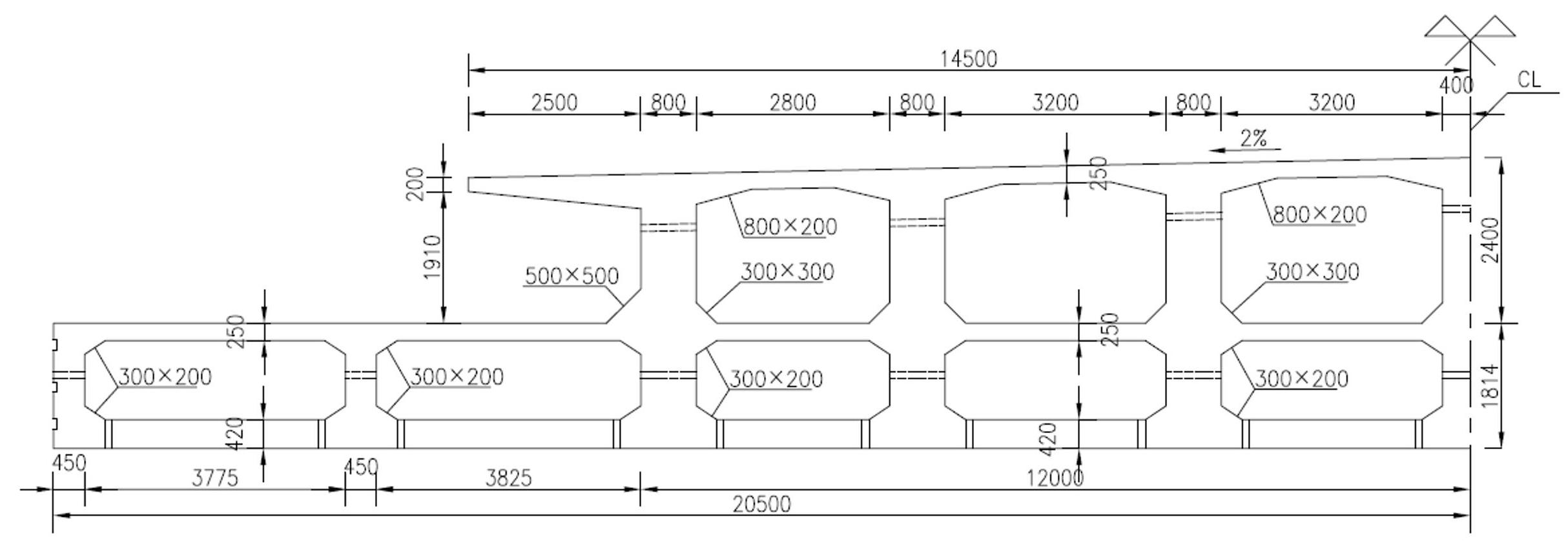Figure3.1/2 Section diagram of the combined position of the arc V-leg and box girder (Unit: mm)