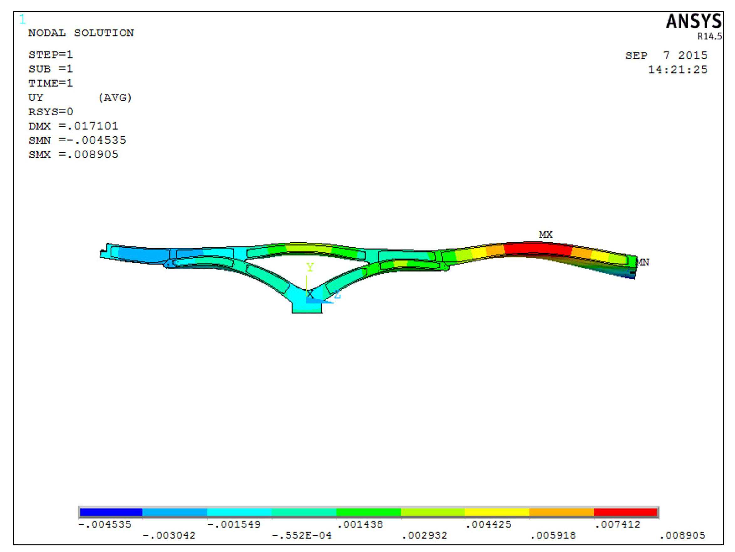 Figure5. Vertical deformation of the solid model (Unit: m)