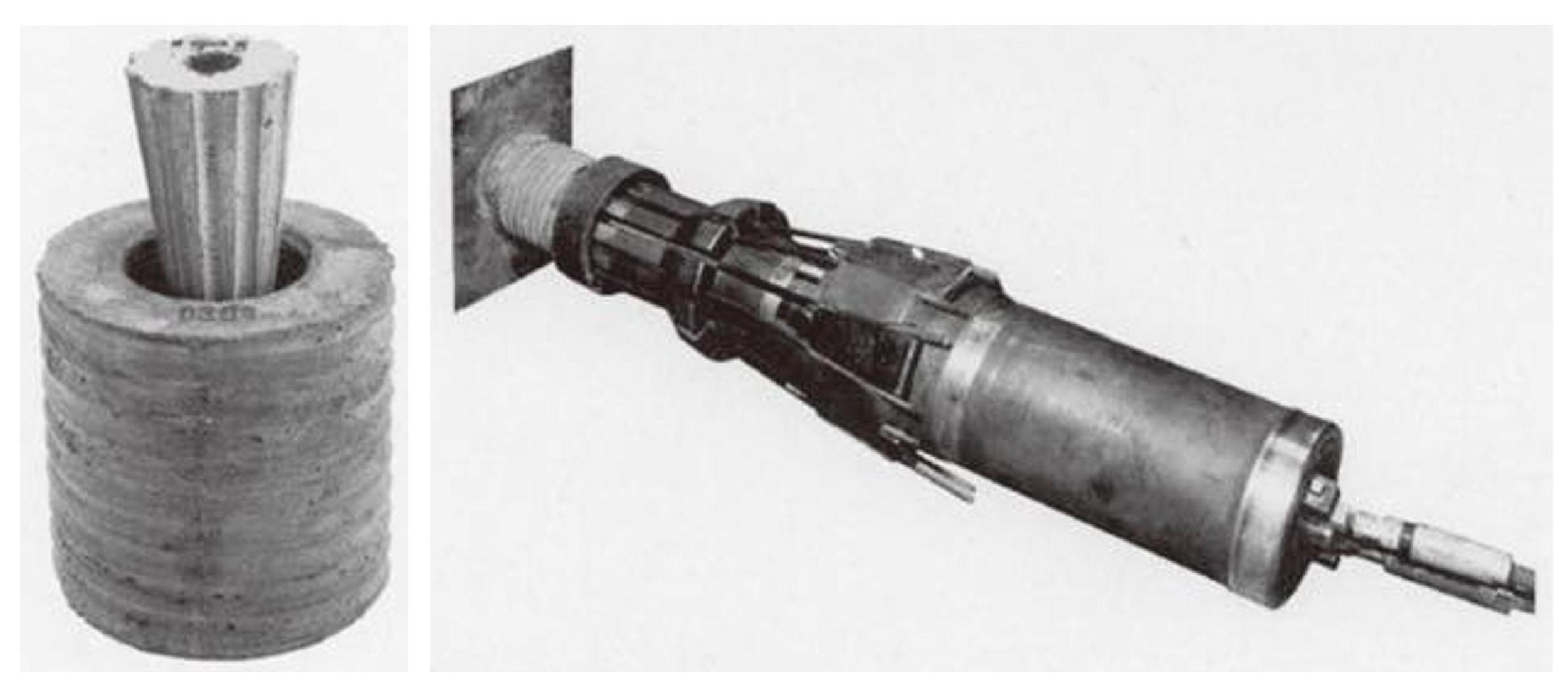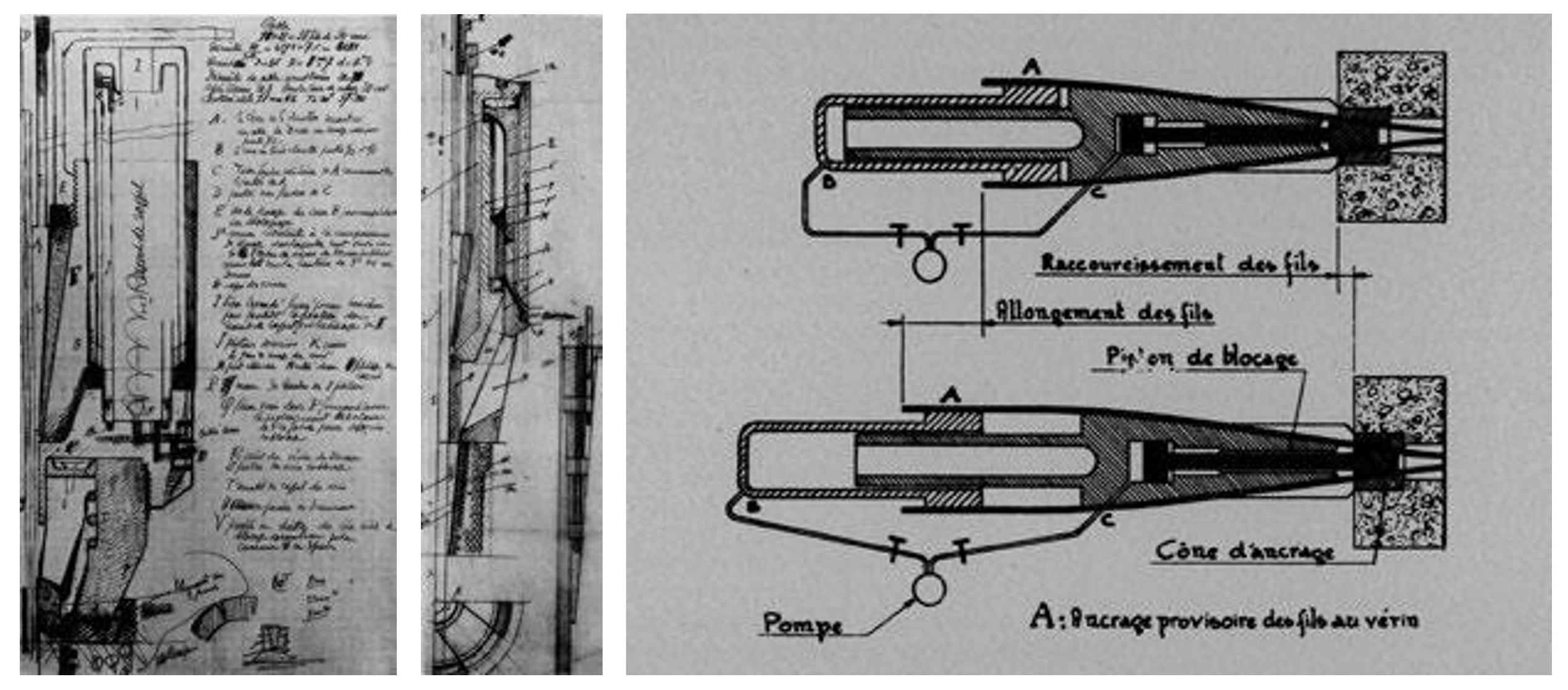 Figure12. Invention of post tensioning in 1939 (concrete anchorage cone and tensioning jack)