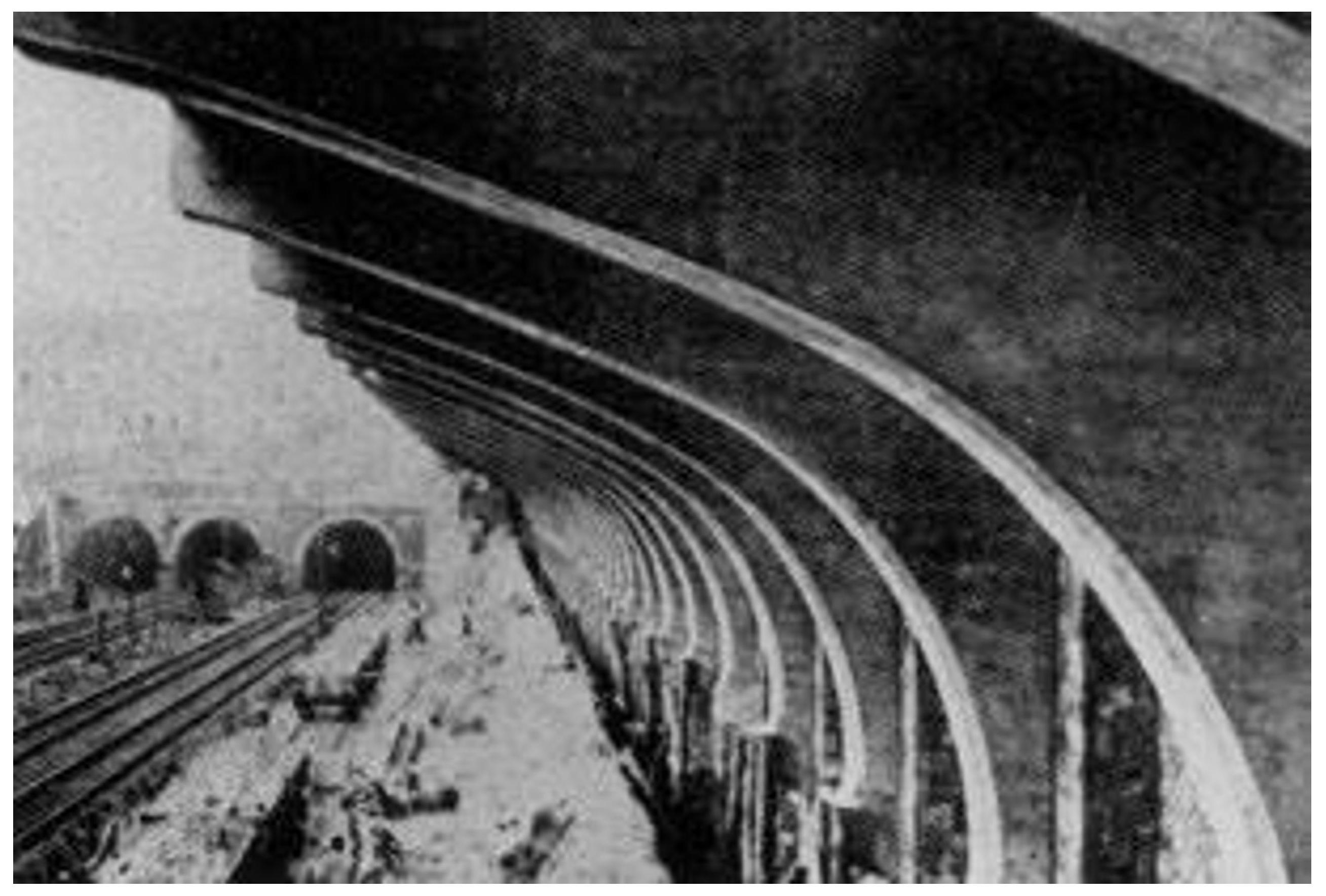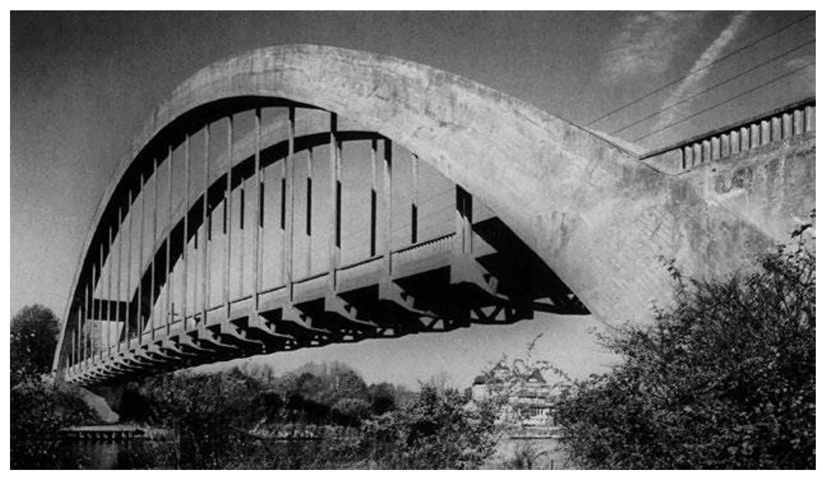 The construction of the Veurdre Bridge was an incredible adventure. In the winter of 1909 to 1910, a flood almost destroyed the city center [2]. Luckily, the bridge did not encounter any major issues, and the bridge was completed with the help of hydraulic jacks and without any setbacks. The bridge was aligned vertically with the handrail. After some time, when Freyssinet returned to the bridge, he noticed significant arch deformation on the handrails that increased over time. The bridge was in danger of collapsing. As the positions for the jacks were still open, he took some workers and in one night elevated the bridge back to a safe position. This problem and its solution conclusively demonstrated him that the modulus of elasticity had clearly reduced.