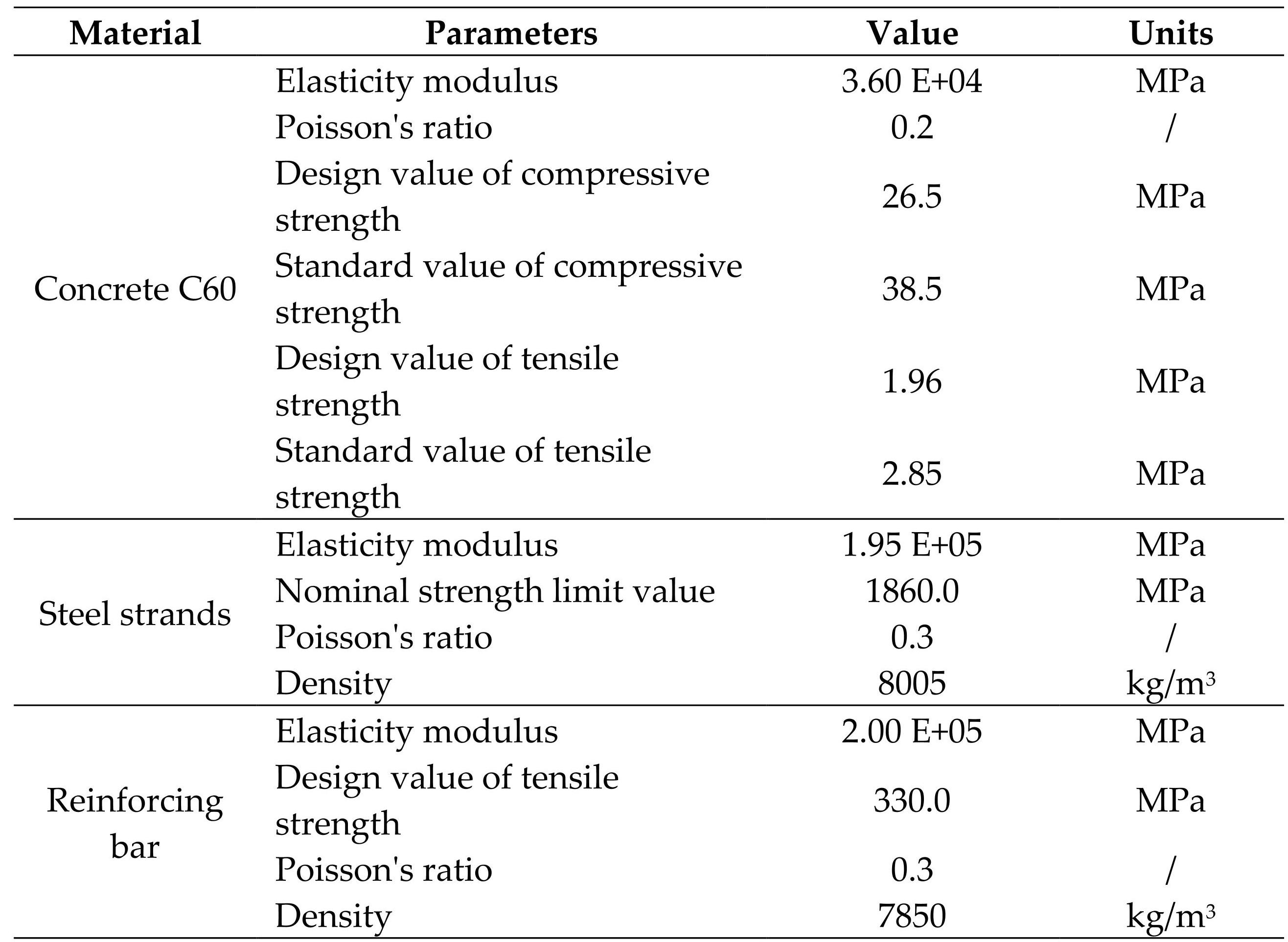 The physical property parameters of the main materials used in the structural analysis of the main bridge are shown in Table 3 [6].