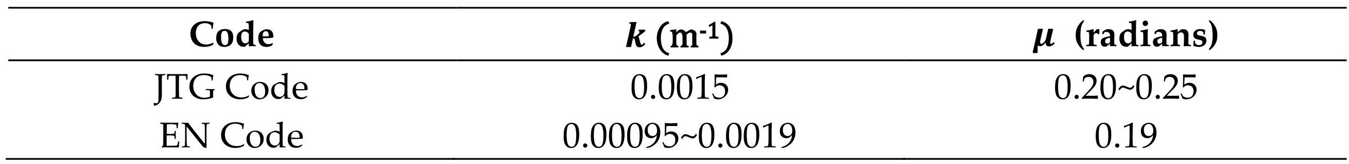 Table1Values of coefficients 𝑘 and 𝜇 according to the GB code and JTG code