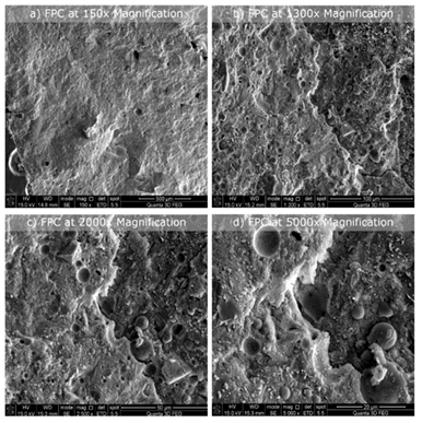 The microstructural morphology of the interfacial transition zone (ITZ) between the cement matrix and coarse aggregates in ordinary concrete (OPC) and functional concrete (FPC) was observed under different magnifications by scanning electron microscopy (SEM) , as shown in Figures 5 and 6.