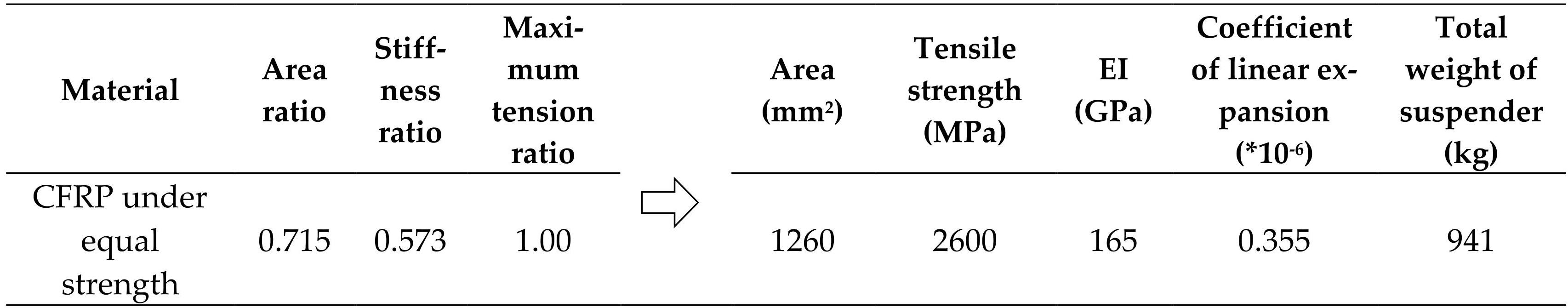 Table2Comparison of material properties between a CFRP suspender and a steel strand suspender under different replacement principles