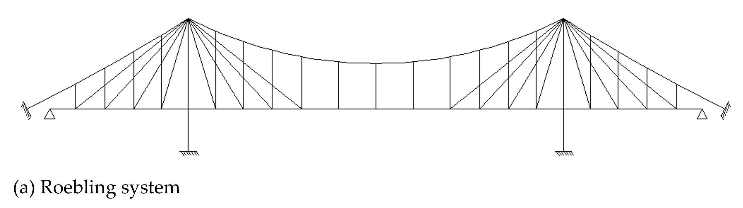 Note1: In Table 1 item b, the (thrust) middle-bearing arch bridge and (tension) middle-bearing suspension bridge correspond to the illustrations in Item b) of Figure 8.