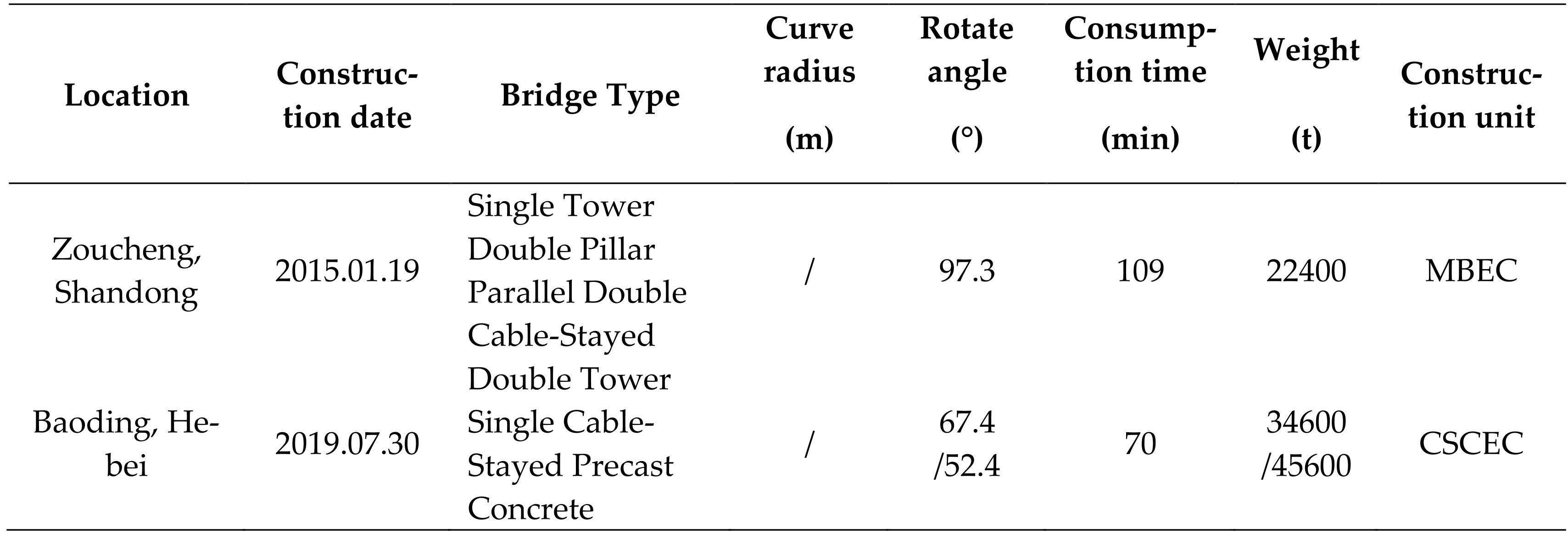 Current information on the swivel construction of bridges with minimum radii and rotation angles is presented in Table 1.