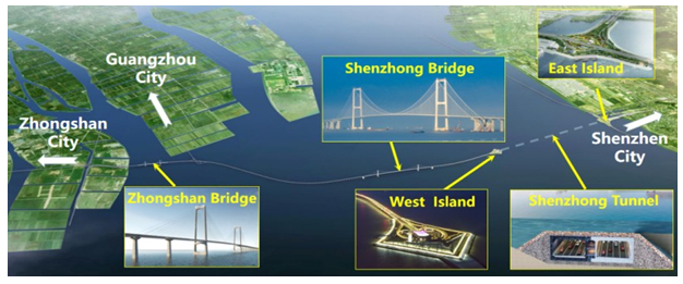 The Shenzhen-Zhongshan Link has a total length of approximately 24 kilometers, featuring eight lanes in both directions, with a designed speed limit of 100 km/h, and the approved budget is 44.69 billion RMB yuan [1]. The project was located in the core area of the Guangdong-Hong Kong-Macao Greater Bay Area's "9 + 2" city cluster, connecting Shenzhen, Nansha and Zhongshan Districts of Guangzhou. The project officially opened to traffic on June30, 2024.