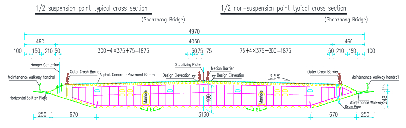 Figure 9 Steel box girder cross section of the Shenzhong Bridge