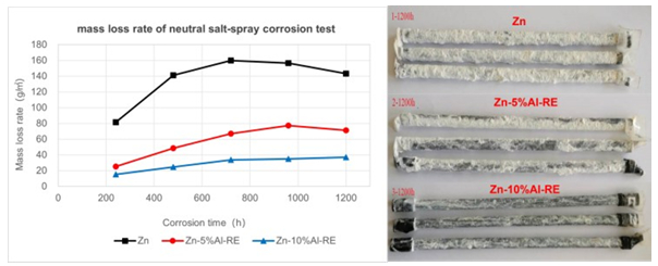 Figure 13 Comparison of neutral salt spray test results for different alloy-coated steel wires
