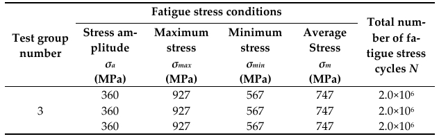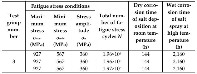 Table5Number of stress cycles used for the dry‒wet alternating corrosion and fatigue cycle coupling tests