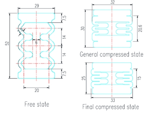 To address the issue of potential air leakage in cable clamp positions, a triple seal structure has been implemented at the straight seams, circumferential seams, and bolt positions [4] (Figure 15) . At the straight seams, a rubber spring seal strip adaptable to a gap ranging from 15 mm to 35 mm between half-clamps has been developed (Figure 16) . For the circumferential seams, an extended multisawtooth sealing structure is proposed for the interface between the ends of the cable clamp and the main cable, enhancing the quality of the seal (Figure 17) .