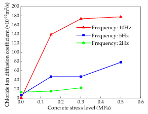 (1) Under alternating loads, the chloride ion diffusion coefficient is related to the stress level and the alternating frequency (positively correlated) .