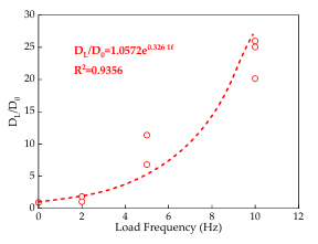 Figure 5 Relationship between the al ternating load frequency 𝑓 and 𝐷 𝐿 /𝐷 0