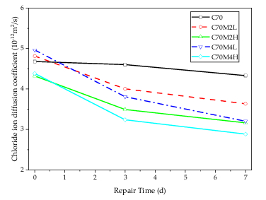 Figure 3 Chloride ion diffusion coeffi cient under different conditions