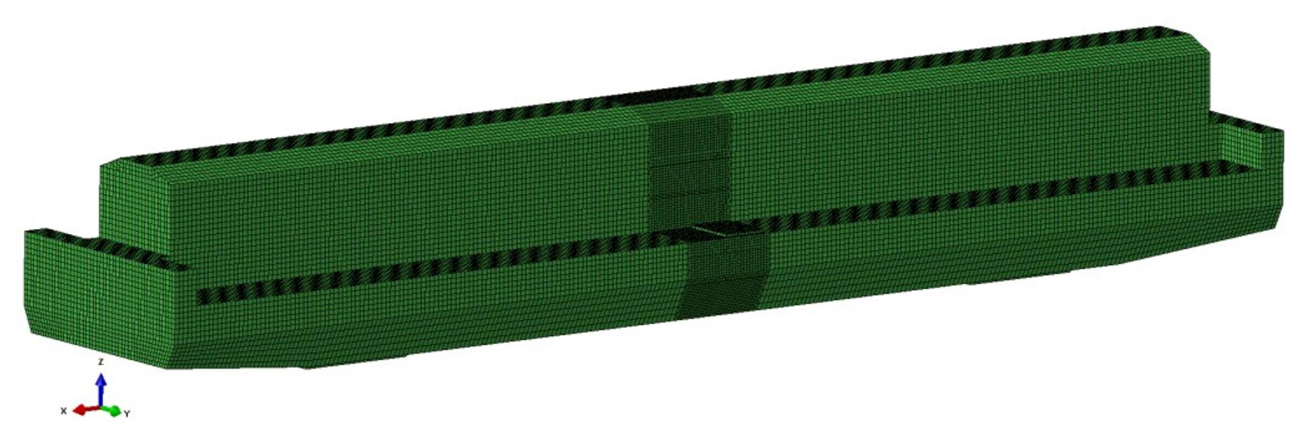 Finite element meshes are generated separately for both the concrete and the prestressing tendons.