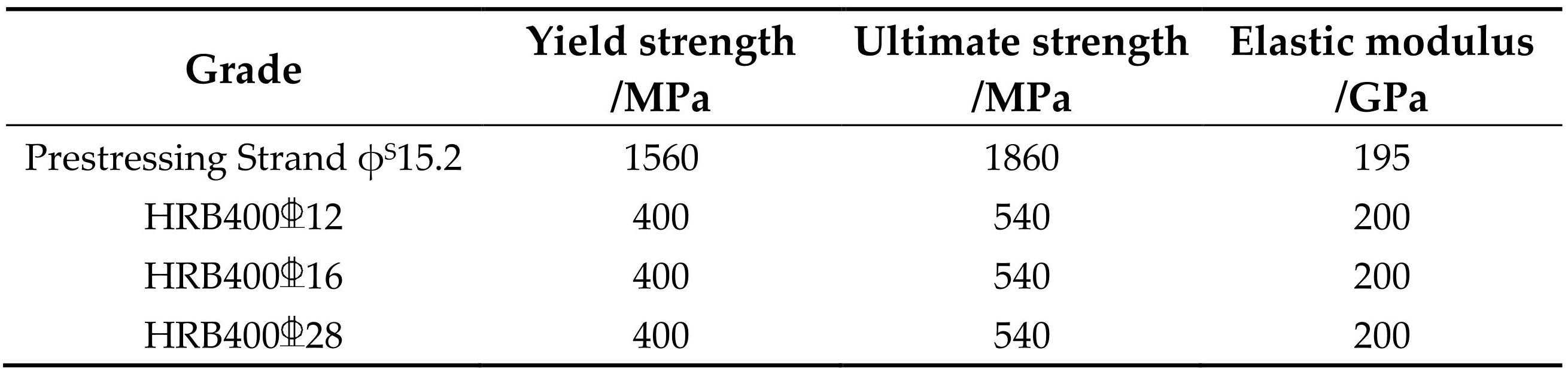 Table2Material parameters of reinforcement and prestressing strands