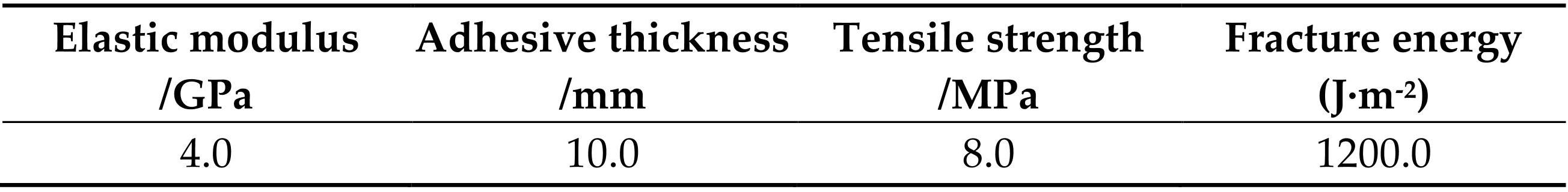 Table3Adhesive contact parameters of the epoxy resin mortar