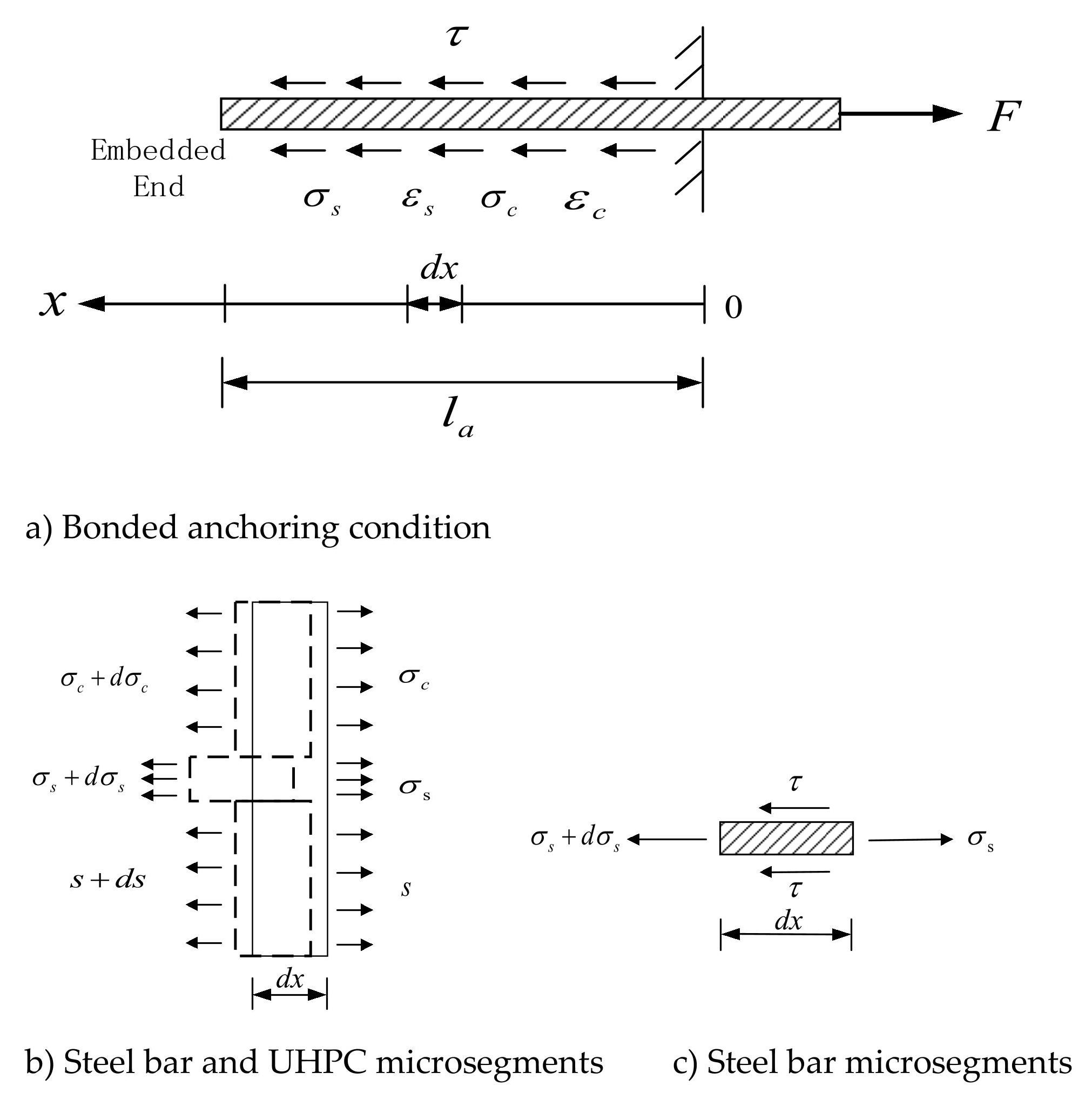 By analyzing UHPC microsegments and steel bar microsegments separately, the following formula for calculating the actual bond stress can be obtained: