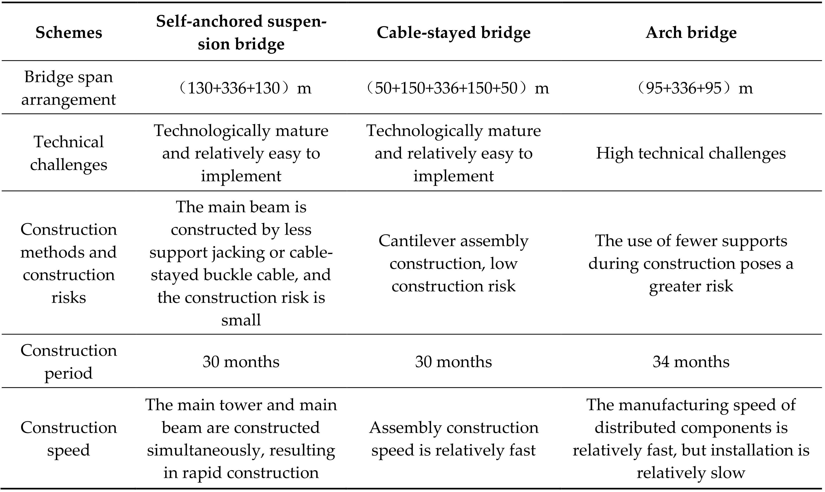 In the scheme selection process, the following design criteria were strictly adhered to in accordance with the location characteristics and functional requirements of the proposed bridge: