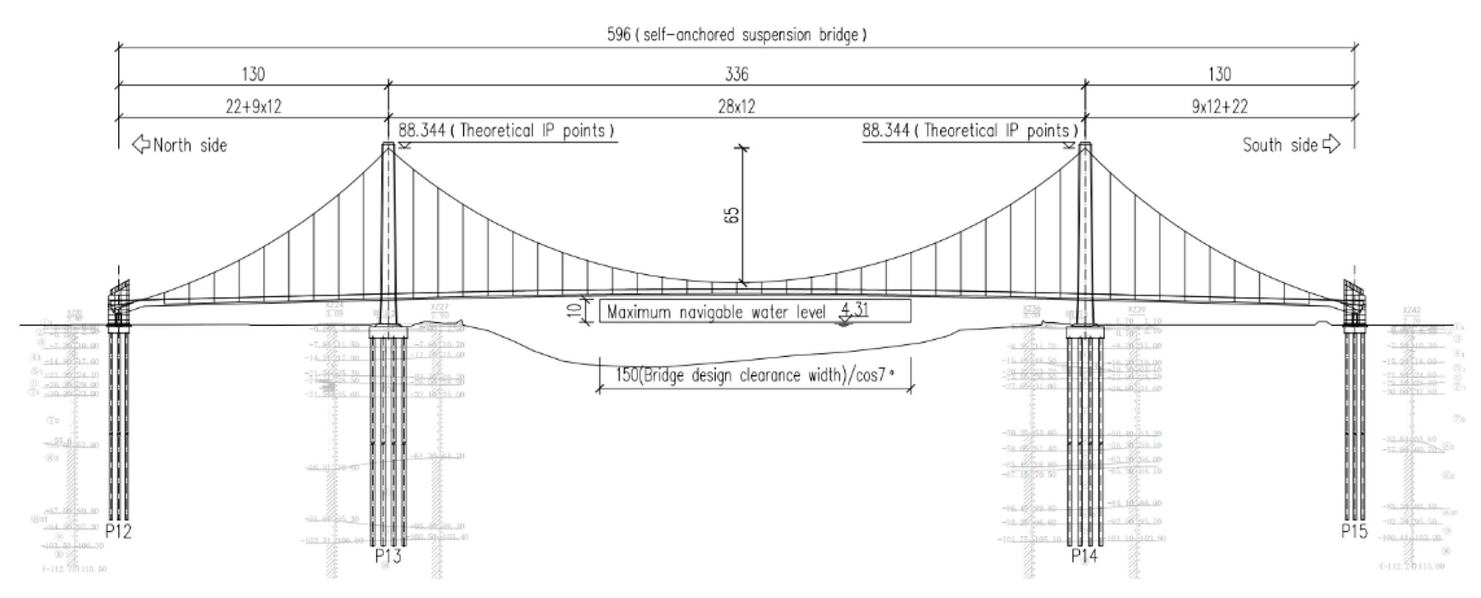 Figure6 Self-anchored suspension bridge elevation layout diagram (unit: m)