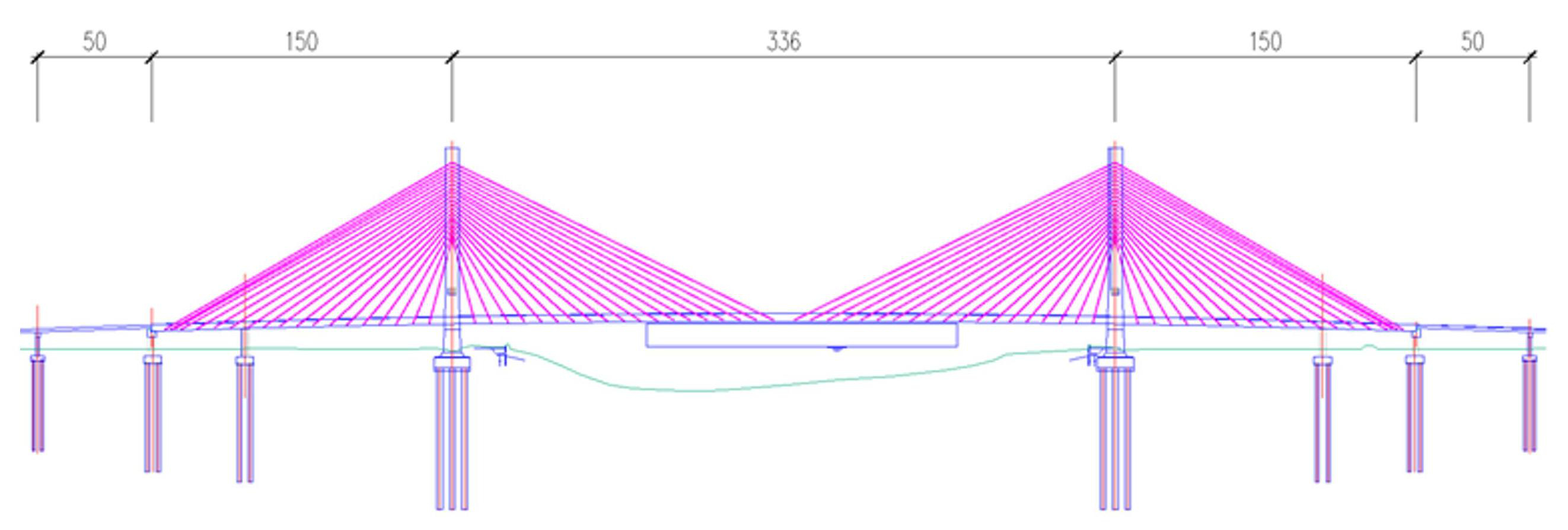 Figure7 Cable-stayed bridge elevation layout diagram (unit: m)