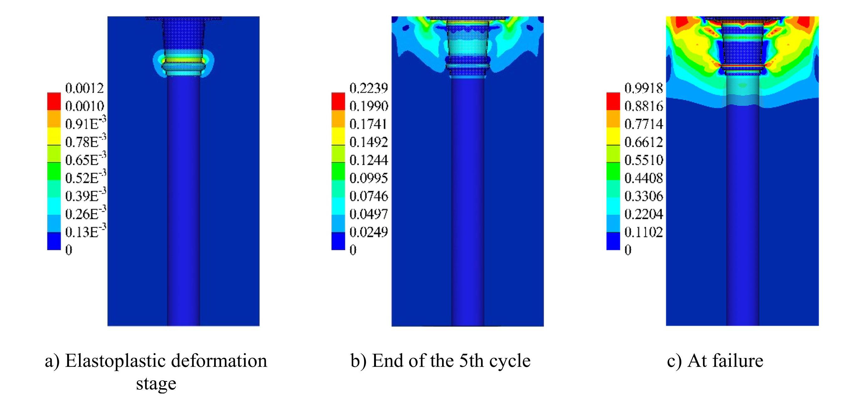 Figure5 Numerical simulation of the damage evolution in the anchorage zone