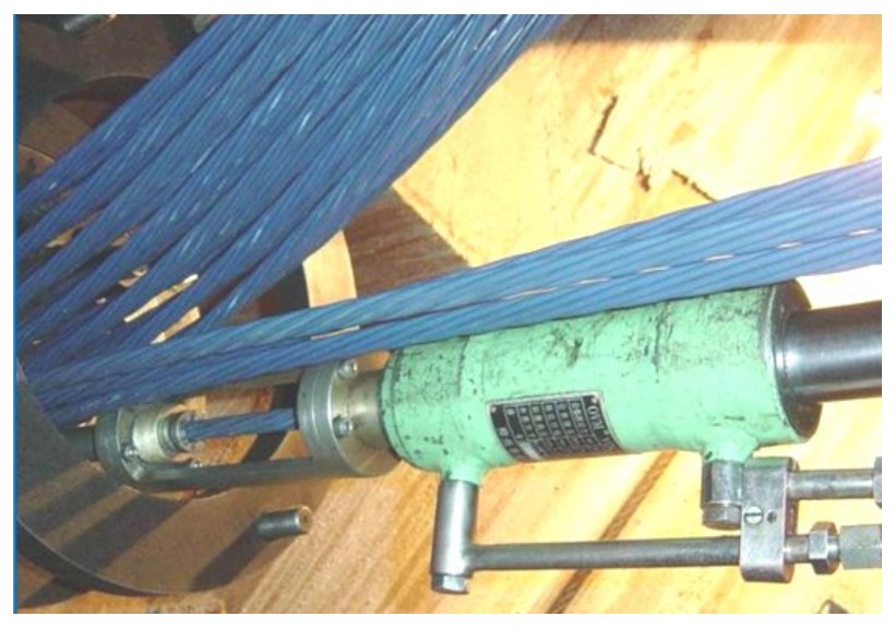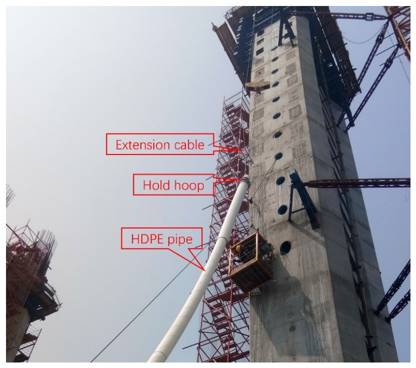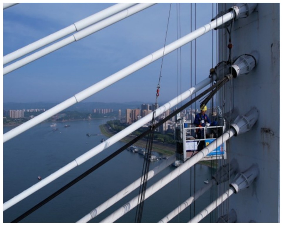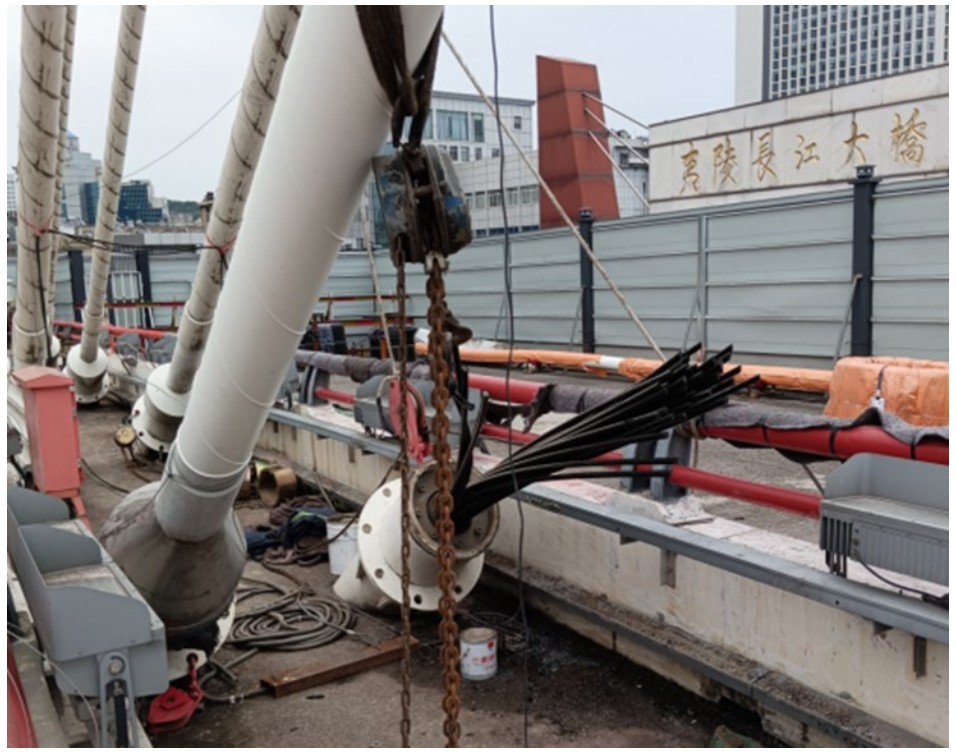 Abstract:To address the technical difficulties associated with the replacement process of group-anchored steel strand cables for long-span cable-stayed bridges, such as the lack of force-release structures in the anchorages, large elongation, and difficulty in single-strand unloading, this paper takes the cable replacement project of the Yiling Yangtze River Bridge as the background and proposes an integrated cable force release device and construction technology suitable for long-cable replacement. The device connects the replacement anchorages with the exposed steel strands of the old cables and combines reaction support frame, tensioning rod, and jacking system to achieve graded and synchronous unloading of cable force, effectively addressing the limitations of the original anchorages, which cannot directly release cable force and have insufficient adjustment capacity. Engineering practices shown that this method ensures safe and controllable construction, smooth cable force unloading, and minimal structural disturbance, successfully achieving the replacement of all 236 stay cables on the bridge. Post-construction inspection confirms that the cable forces and deck alignment meet the design requirements, verifying the reliability of this technology. The technical system described in this paper can provide references for the design and construction of cable replacement in similar bridges.