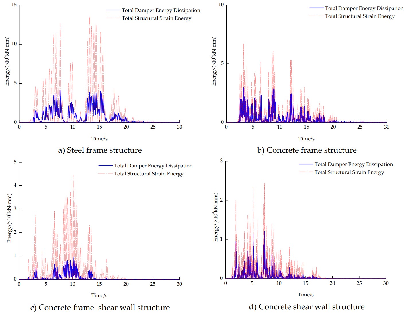 Abstract:To investigate the significant influence of structural characteristics on the calculation of additional effective damping ratios in seismic energy dissipation structures, this study examines four typical structural types: steel frames, concrete frames, concrete frame–shear walls, and concrete shear walls. Additionally, the compatibility between the structural features and three calculation methods—the code method, energy ratio method, and time-variant method—is analyzed. Results show that the optimal method depends strongly on the structural type. For steel frames with low inherent damping and high ductility, the energy ratio method proves to be the most accurate. In the case of concrete frames, all three methods yield small calculation errors; however, the code method is recommended because its computational efficiency and accuracy are comparable to those of the time-variant method. For concrete frame-shear walls with notable stiffness variations, the time-variant method achieves the highest precision, although the code method remains a practical primary alternative. Regarding concrete shear walls, the code method tends to overestimate the damping effects, making the energy ratio method or time-variant method the preferred choice. This study establishes clear adaptation guidelines between structural characteristics and calculation methods, effectively resolves applicability issues, improves computational accuracy and design efficiency, and provides an important basis for the engineering application of viscous dampers.