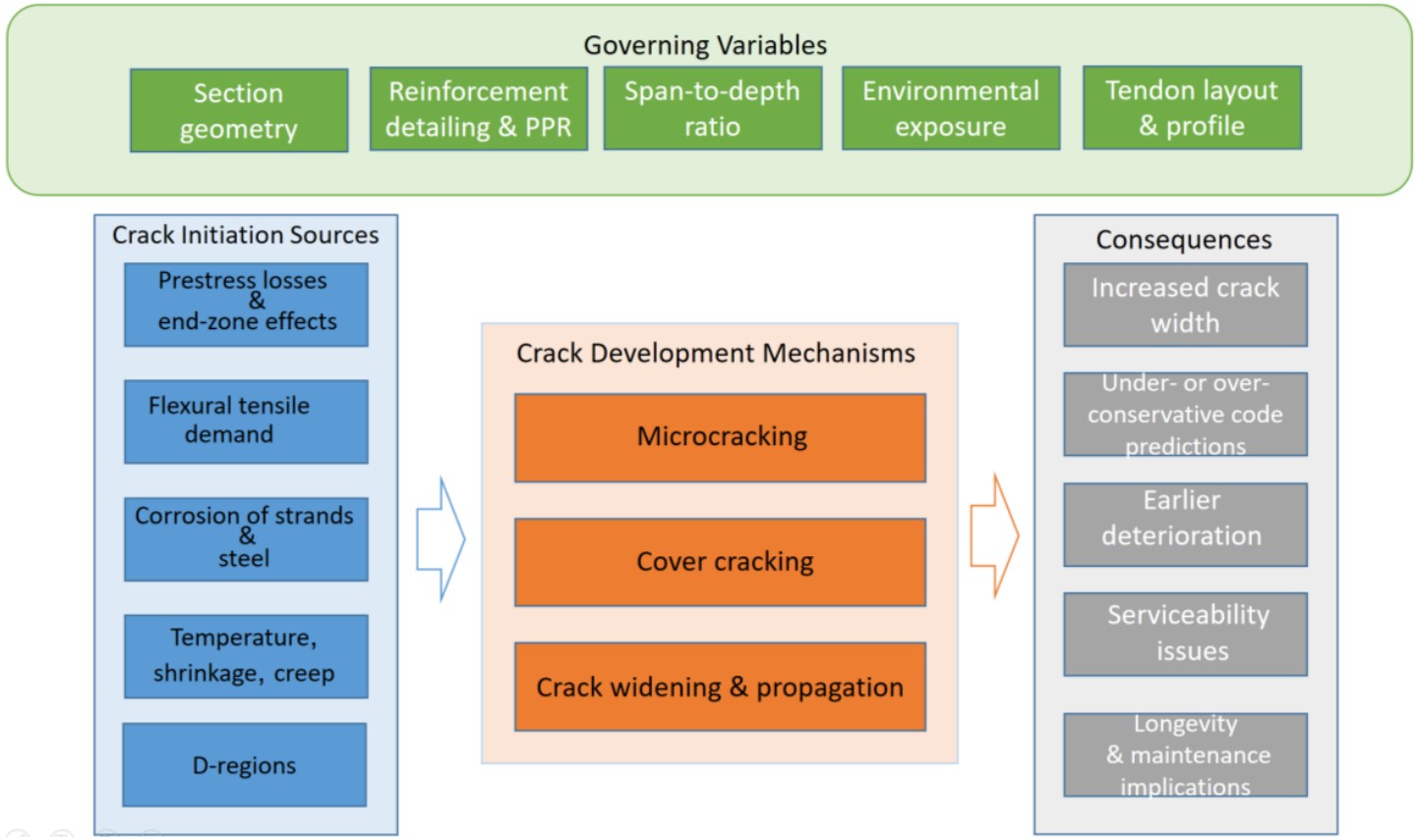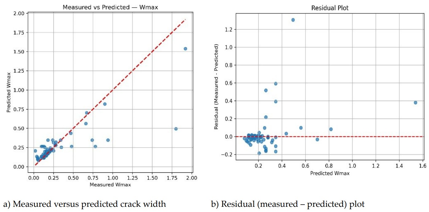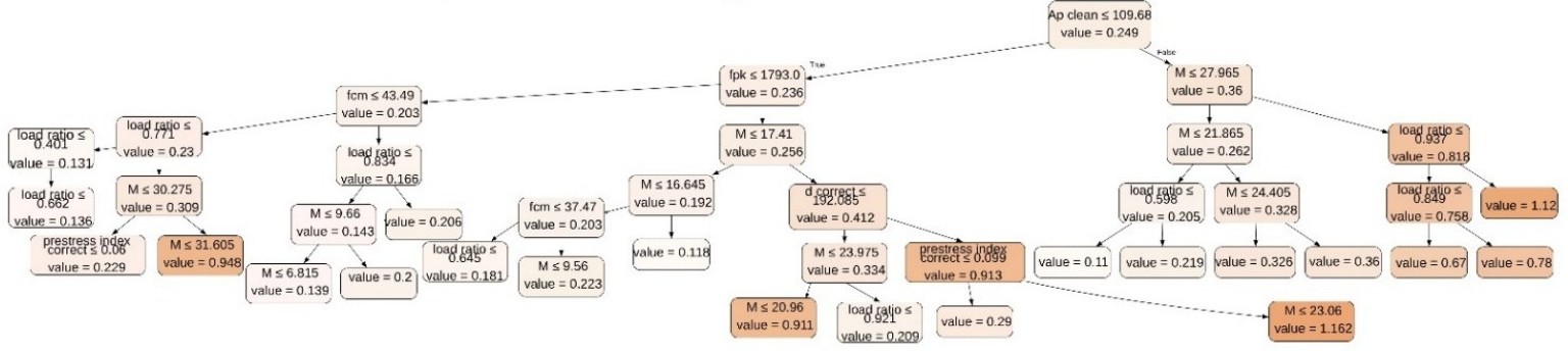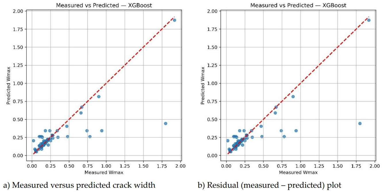 Abstract:Accurate prediction of crack width is essential for serviceability design and durability assessments of prestressed concrete structures. This study presents an explainable machine learning framework for predicting the maximum crack width of prestressed concrete beams based on experimental data. A comprehensive database of 404 specimens, including the bending moment, prestress index, load ratio, effective depth, and section stiffness, was constructed and enhanced through mechanically informed feature engineering. Random forest and XGBoost regression models were developed and systematically tuned using cross-validated hyperparameter optimization. Among the evaluated models, XGBoost achieved the highest predictive accuracy, with a coefficient of determination of 0.6507 and a root mean square error of 0.184 mm. Model interpretability was investigated using feature importance measures and SHapley Additive exPlanations, which identified the bending moment, load ratio, concrete compressive strength, and prestress index as the dominant factors influencing crack width. The observed relationships are consistent with the established flexural cracking theory, confirming that the proposed model captures physically meaningful behavior. The results demonstrate that combining explainable artificial intelligence with structural mechanics provides a robust and transparent tool for crack width prediction, offering valuable support for the performance-based evaluation and design of prestressed concrete members.